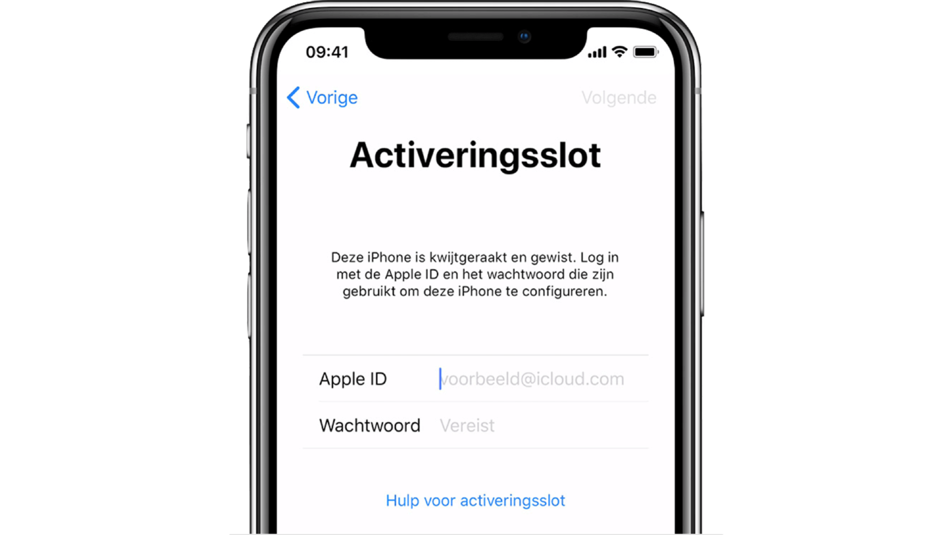 Activeringsslot, ook wel bekend als ‘iCloud lock’ is een beveiligsmethode om te zorgen dat niemand wat aan je gestolen of verloren apparaat heeft. Activeringsslot wordt actief wanneer je apparaat is ingelogd bij iCloud en Zoek mijn aan had staan, maar zonder uit te loggen is gewist. De persoonlijke gegevens zijn dan misschien gewist, maar het apparaat is onbruikbaar.